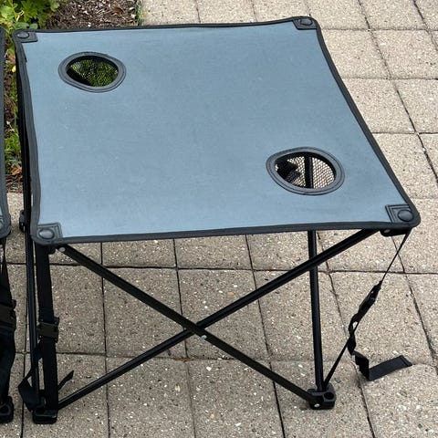 Med en bordplade, der er lavet af let aluminium og MDF, er bordet nemt at flytte rundt på, sætte op og rengøre. Det robuste stel og bordplade gør dette bord slidstærkt og holdbart. Takket være det sammenklappelige design er dette campingbord let at transportere og kan hurtigt gemmes væk, når det ikke er i brug. Bærehåndtaget gør det meget nemt at medbringe bordet.