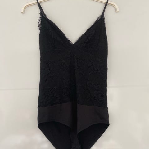 Bodystocking, str. small, sort, nylon og elastan, God men brugt, Sort bodystocking i glat stof med 2 tryklåse i bunden.