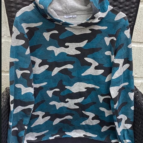 Denne jakke har et dinosaurprint med forskellige typer dinosaurer i forskellige farver på en blå baggrund. Den har en hætte og lynlås foran. Ærmerne har elastisk kant, hvilket giver en komfortabel pasform.