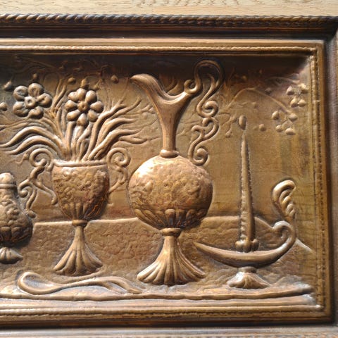 Vægrelief pige på potte i kobber