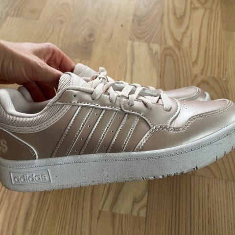Adidas sneakers i str. 40. Modellen er lave sneakers i hvid med lyse detaljer og flerfarvede snørebånd. Overdelen er i glat materiale med perforerede striber i siderne og polstret hælkappe. Klassisk gummisål og snørelukning. Velegnet som hverdagssko.