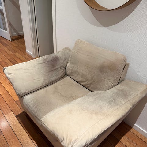Stoffet kan vaskes, bund stoffet er gået op et par steder. Ikke noget der betyder noget.