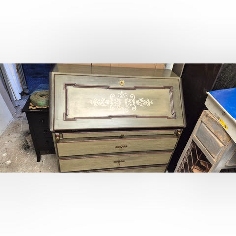 Antik skænk som har fået slebet top og bund og givet ny olie, malet med møbelmaling og dekoreret med transfer og perlemors voks :)