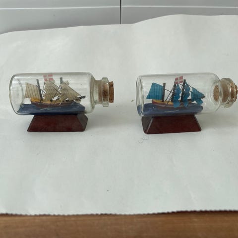 Retro samling af flaske skibe og diverse pynt til sommerhuset.