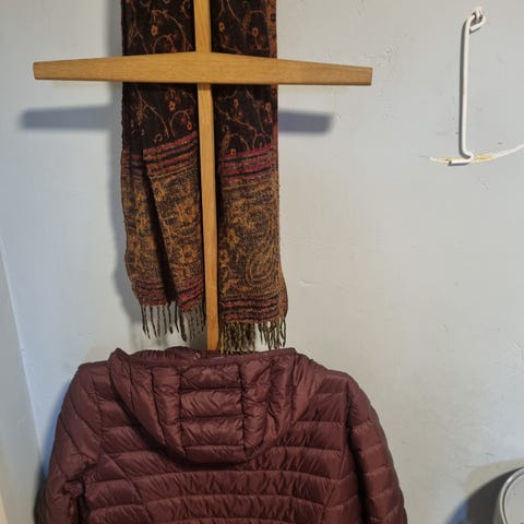 De stikker 22-22,5cm ud fra væggen og er perfekt til at hænge bøjler på.