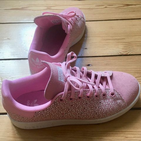 Adidas Stan Smith sneakers i hvid i størrelse 35 1/2. Et fejret sneakerikon, dette low top design med snørelukning, har en glat læderoverdel, prydet med perforerede 3-Stripes. Gummiydersålen giver pålidelig trækkraft, mens OrthoLite® indersålen sikrer komfort. Fra dyre- og røgfrit hjem. Kan afhentes i Brøndbyvester, eller sendes for købers regning. Følg min profil - køb flere stk. og spar porto.
