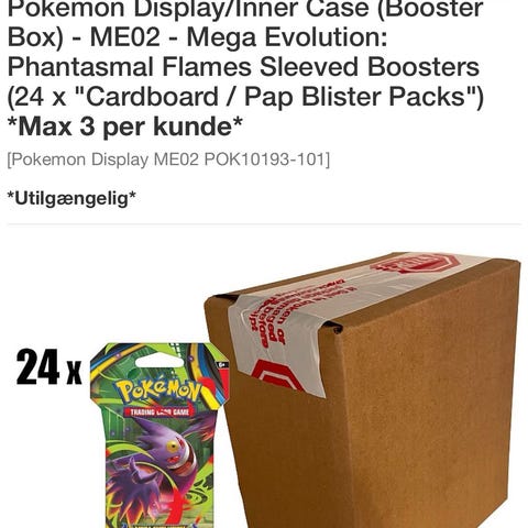 Pokémon Mega Evolution Phantasmal Flames Elite Trainer Box. Samleboks til Pokémon Trading Card Game med temaet Phantasmal Flames. Boksen er beregnet til opbevaring og organisering af kort og tilbehør og er velegnet til spillere og samlere fra 6 år og opefter. Indholdet kan typisk omfatte boosterpakker, kortlommer, terninger og andre spilrelaterede elementer afhængigt af udgaven.