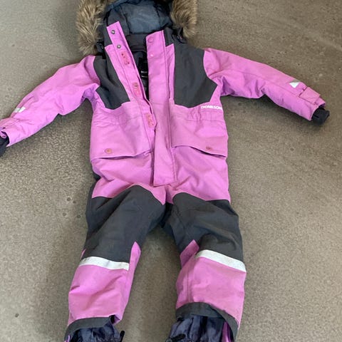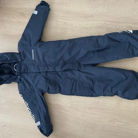 Flyverdragten har brugsspor - et lillebitte hul ved siden af knæet i det yderste materiale, lidt slid og misfarvning fra jord/sandkassen på maven og et brud på yderste led på fodstroppen. Men samlet set stadig en rigtig fin, pæn, varm, slidstærk og funktionel flyverdragt. Måske en flyverdragt nummer 2 som man kan skifte til de dage, hvor der er mudderbad på legepladsen eller når nummer 1 skal vaskes eller er drivvåd? I sin tid købt på udsalg til 749 kr. som i dag også er billigste netpris.