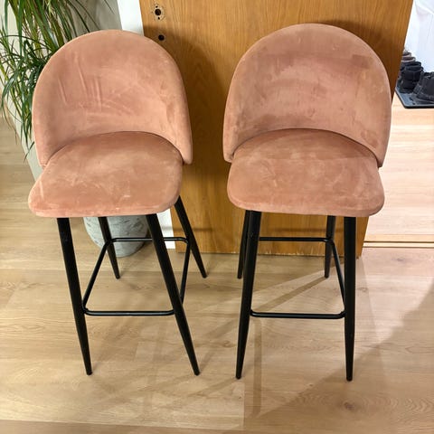 Sælger 2 flotte barstole med ryglæn i grå velour. Stolene er ca. 1 år gamle og fremstår i rigtig fin stand. De fejler ingenting.