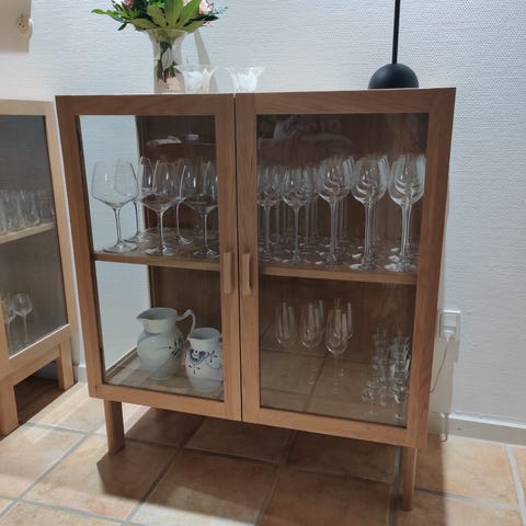 Flotte vitrineskabe sælges de har stået samme sted i stuen siden køb, opbevaring for pynte ting. Vi har fået reolsystem og disse flotte vitrineskabe og kommode passe desværre ikke mere. Samlet pris er 1200 kr