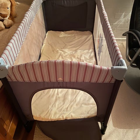 Kinderkraft rejseseng i sort. Sengen har net i siderne og leveres med transporttaske, som gør den egnet til rejse og opbevaring. Egnet til brug som midlertidig soveplads til baby eller mindre barn. Madrassen på billederne medfølger. Solid kvalitetsseng.