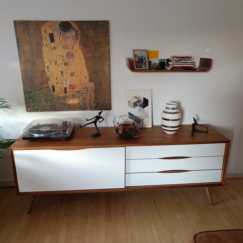 Skænkens elegante form passer ind i mange af boligens rum og hjælper smukt med at optimere opbevaringen i boligen.