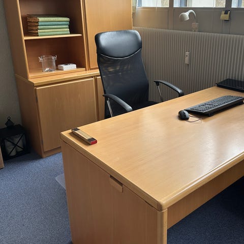 Tidløst dansk design fra Ørskov tegnet af Jørgen Møller. Flot, gedigent og holdbart. Dette skrivebordssæt blev købt for nogle år siden som gave, er næsten ikke blevet brugt og har ingen brugsspor.