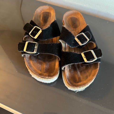 Sommerlige læder sandaler med design referencer til romerske sandaler. Brugt til en fest eller to men har stået i skabet uden at blive brugt. De fremstår næsten som ubrugte. Lukkes med en lille lynlås i hælen. Flot tysk design af Duffy. Kan afhentes ved Tølløse eller i Horne ved Fåborg efter aftale. Estimeret ny pris er 600,-