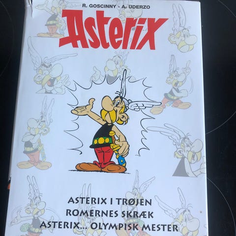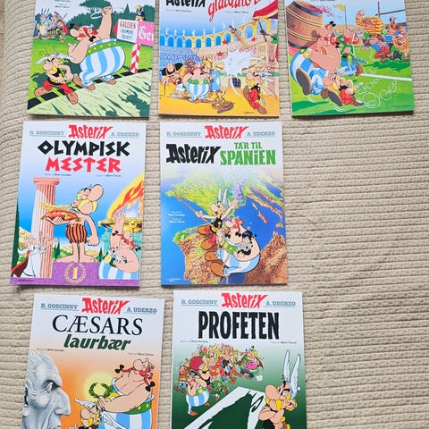 Samlingen indeholder hardback-udgaver med flere klassiske Asterix-historier samlet i hvert bind, blandt andet titler som "Asterix og hans gæve gallere", "Asterix og trylledrikken" og "Asterix og goterne". Velegnet til læsning og som samlet udgave af Asterix-serien på dansk. Samt en tegneserie. Der har aldrig været bladret i dem.