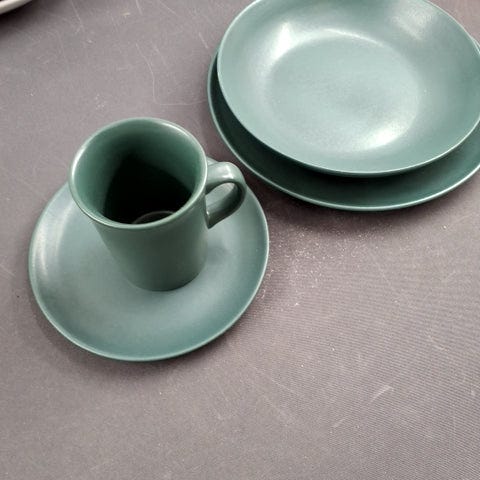 6 grønne stentøj tallerkener