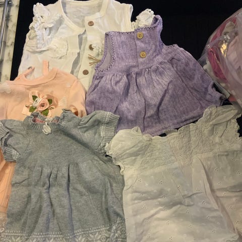 Har så meget pige tøj i str. 50 56 62 68 alt er uden huller og pletter og der også lidt mere end på billederne. Ca 300kr pr størrelses pakke og ellers byd gerne.