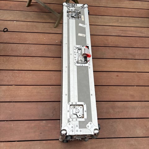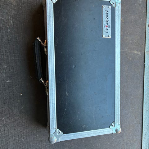 Ældre KW case med et ældre pedaltrain board. Tidligere ejer har skåret lidt i indmaden - Jeg tænker for at få plads til en høj pedal. Oprindeligt blev det leveret med en lav plade, så pedaltrain boardet har nok gjort at der var lidt højderproblemer.