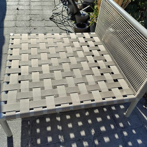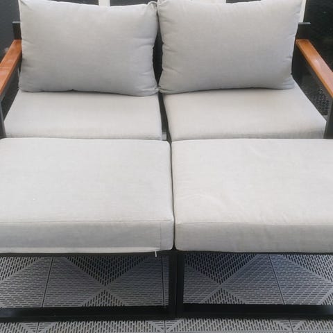 2 -delt sofa med sort stel, grå hynder ⚡Brugt med hyndebetræk - derfor som nyt⚡ + havebordet.