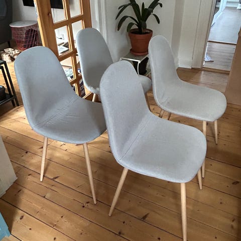 Stolene er enkle og moderne i design og passer godt til de fleste spiseborde.