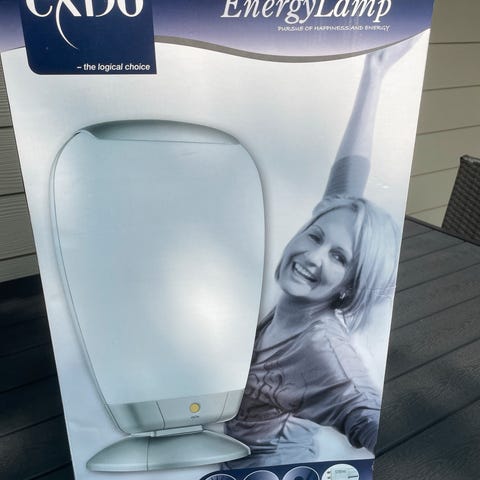 Camilo Mini Daylight terapilys i hvid. Lampen er mærket som terapilys/terapibelysning og er beregnet til brug ved 220-240V, 50Hz med en effekt på 45W. Enheden har IP20-klassificering og er udformet som en kompakt, rektangulær lampe med frontpanel og betjeningsknap på forsiden. Velegnet som lysbehandling i indendørs miljøer, hvor der ønskes dagslys-lignende belysning.