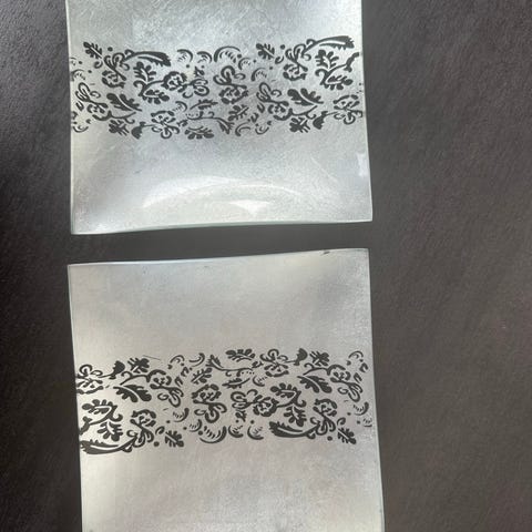 tallerkener med blå-hvidt mønster. Tallerkenerne har et detaljeret motiv med blomster og fugle i midten samt dekorativ bort langs kanten. Let bølget kantprofil. Egner sig til servering af mad eller som dekoration. Materialet fremstår som glaseret keramik/porcelæn baseret på udseendet på billederne. Kaldet minton porcelæn. Sælges på suktioner i England. Prisen er for begge