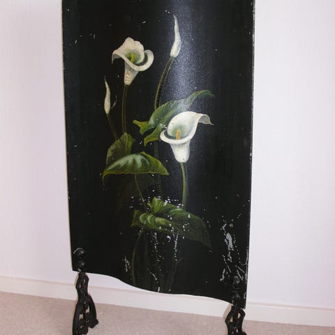 Antik støbejernsovn fra ca 1920. Den har været lavet om til at fyre med petroleum.