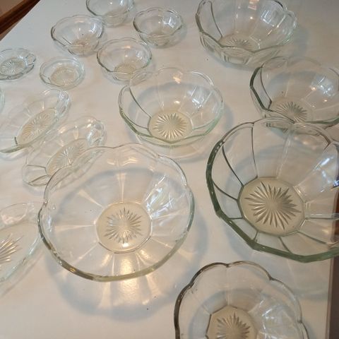 Flotte glas og keramik ting. Små vaser, mælke/sovseskål med to hældetude, tallerkener i flotte farver (8 styk), skåle, drikkekrus (3 styk), salatskål, Caipirinha glas (3 styk). I alt 23 genstande. OBS: nogen af tingene på fotos kan være solgt. Kan også sælges enkeltvis - det har naturligvis indflydelse på porto.