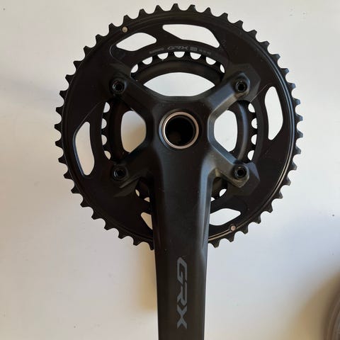 Shimano GRX FC-RX810/820 kranksæt i sort. Kranksættet er beregnet til gravel- og landevejscykler og har 175 mm pedalarme. Der medfølger krankboks som vist på billederne. Velegnet til cykler med Shimano GRX drivlinje, hvor der ønskes et kompakt og robust kranksæt til blandet kørsel på vej og grus. Taget af ny cykel.