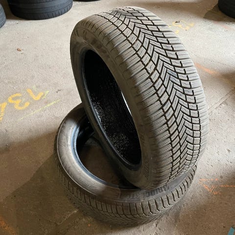 Bridgestone Turanza Eco bildæk i størrelsen 215/50R19 med belastningsindeks 93 og hastighedskode T. Dækkene (4 stk) har siddet på en Cupra Born og kørt knap 5.000 km.