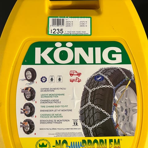 Snekæder, Konig (Thule) XB 16, Snekæder af høj kvalitet, aldrig brugt. Købte i Thansen inden vinterferie, men fordi vi fik kvitteringen væk (har netbank print), kunne vi ikke levere dem tilbage. Vi købte til VW California.