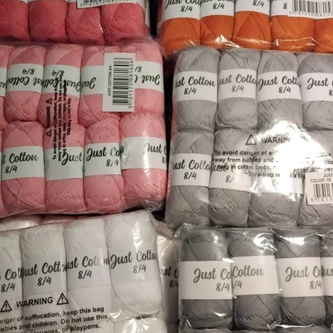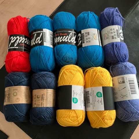 Ca 2 kg forskellig bomuld i lækre farver, alle 8/4. Der er nogle rester vedlagt også, men alt er på billedet.