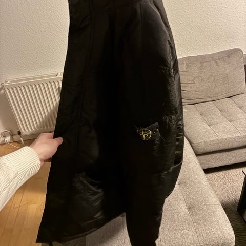 Stone Island vinterjakke til herre i størrelse L. Jakken er sort og foret med dun. Modellen har hætte, gennemgående lynlås foran samt trykknapper. Der er forlommer med klap og knaplukning. Velegnet som varm yderjakke i den kolde sæson.