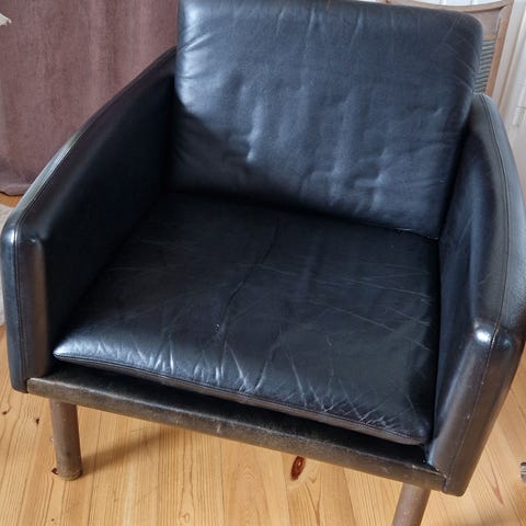 Lænestol i læder med patina, købt hos Zebra møbler.