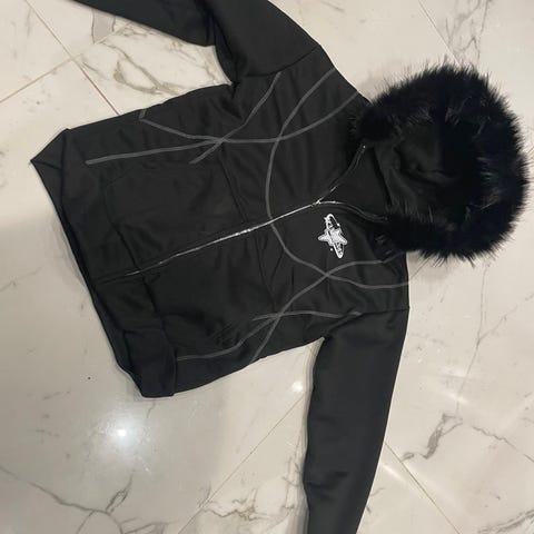 Der er en lille lapning på venstre side foran, men meget diskret! Ellers fremstår den som ny. Derfor den lave pris.