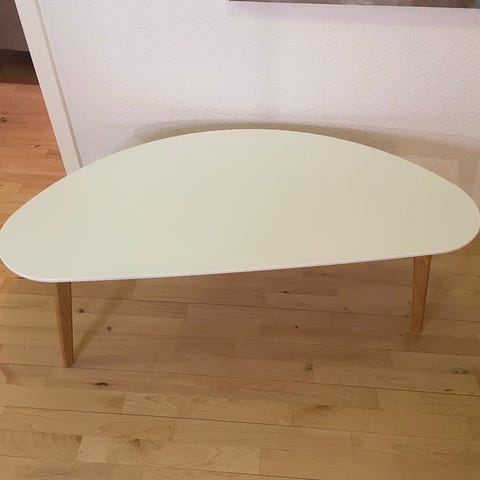 Fin stand, få små hakker i siden, hvid med tre ben i træ