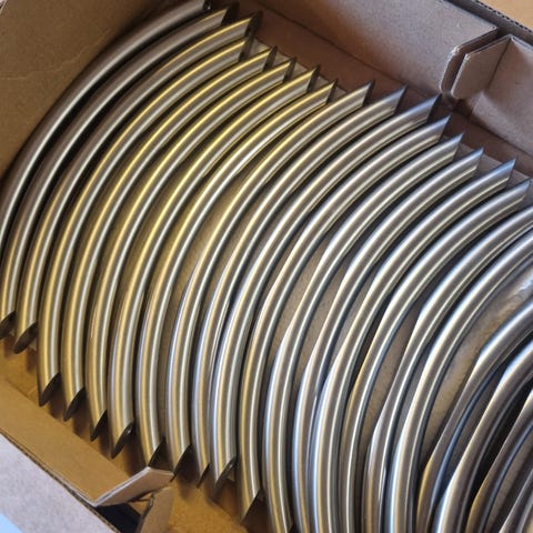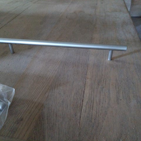 15 køkkengreb i blank stål.
