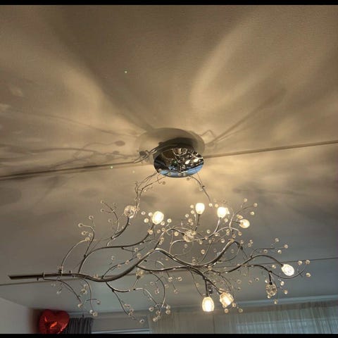 Jeg sælger en loftlampe fra Berk som via huller kaster flower of life symbolet ud på væggene i det rum den hænger i.