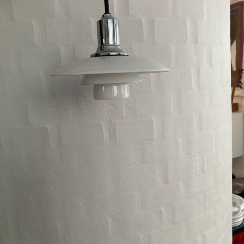 Louis Poulsen Poul Henningsen pendel lamper i hvid. Loftlamperne er udført som klassiske PH-pendler med flere skærme, der giver et blændfrit og nedadrettet lys over f.eks. spisebord eller sofabord. Designet er kendetegnet ved de hvide glasskærme og ophæng i krommetal med sort ledning. Velegnet til indendørs belysning i stue, køkken eller spiseområde. 2 stk 2/1 pendler der medfølger lyskilder og original emballage samt kvittering . sælges samlet og sender ikke . kke ryger hjem . 🏠