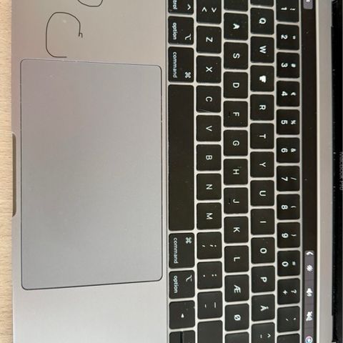 Apple MacBook Pro 13” 2020 model i Space Gray farve. Enheden har indbygget tastatur med pegefelt og leveres med strømforsyning og nyt originalt opladerkabel som vist på billederne. Velegnet til almindelige computeropgaver som tekstbehandling, internetbrug og medieafspilning.