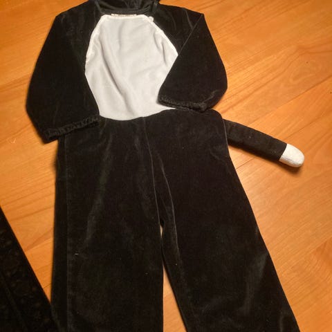 Lukkes foran med velcro. nem at få af og på. Sort skitøj indenunder og dit barn er både varm og klar til fastelavn.