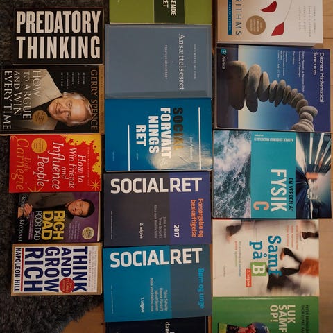 Blandede bøger omkring data mining, statistik og sandsynlighedsregning, kemi, billedanalyse, programmering samt engelsk.