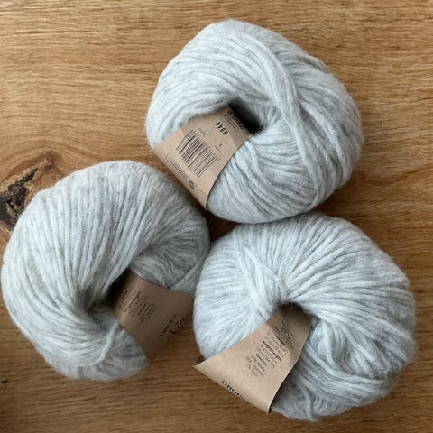 Drops Eskimo garn i blå farve. Garnet er tykt og velegnet til fx strik og hækling af varme projekter som huer, halstørklæder, sweatre eller tæpper. Materialet er uld, som giver god varme og fylde. På billederne ses flere nøgler af samme type garn samt samlet vægt angivet på vægt.