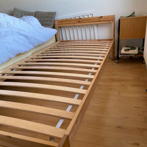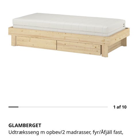 GLAMBERGET udtræksseng har et kompakte design – perfekt på trange steder eller under lave lofter, så du kan udnytte pladsen optimalt.