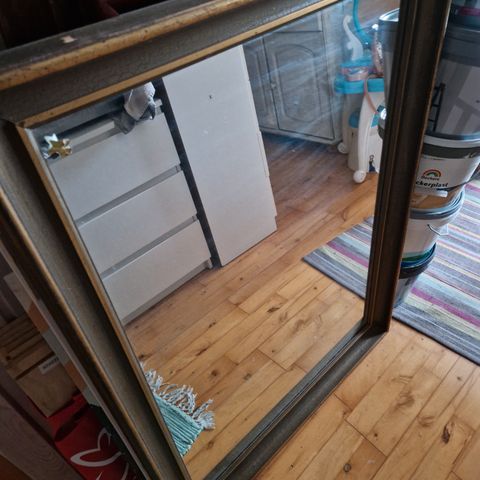 Der er lidt patina på foden, men selve spejlet viser et meget fint billede 😉