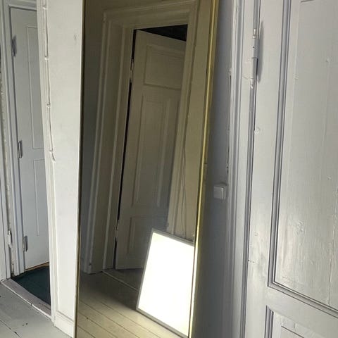 Stort spejl, Gulvspejl med bred sølvfarvet ramme