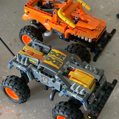 Lego Technic monstertruck byggesæt. Sættet består af en terrængående monstertruck med store dæk, gul og grå karrosseri og sorte detaljer. Modellen samles af Technic-klodser og har bevægelige hjul og forskellige mekaniske detaljer. Velegnet som byggesæt til leg eller som samlermodel for Lego Technic-interesserede.