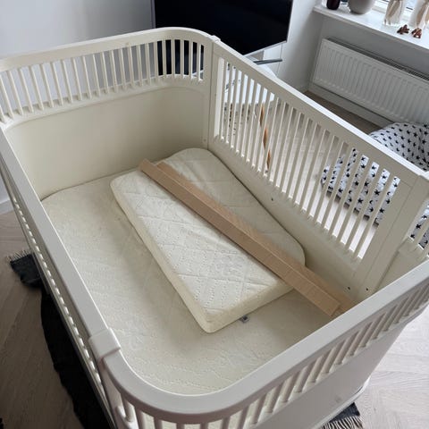 Sebra Kili tremmeseng i hvid. Klassisk tremmeseng med høje sider og afrundede hjørner. Sengen har bund i træ og kan udvides, så den kan bruges både som tremmeseng og senere som juniorseng. Velegnet til baby og mindre barn i børneværelse eller soveværelse.