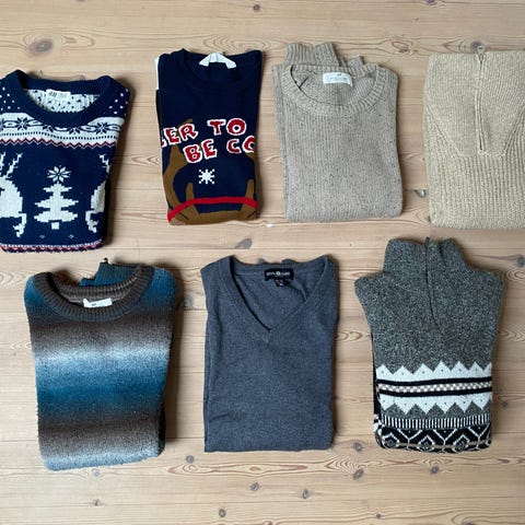 Pakken med vintertøj: sweater, bluser, bukser, uld vest str. 140
