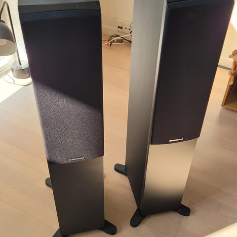 Købt i 2021, super fede gulvhøjtalere der fremstår som nye.